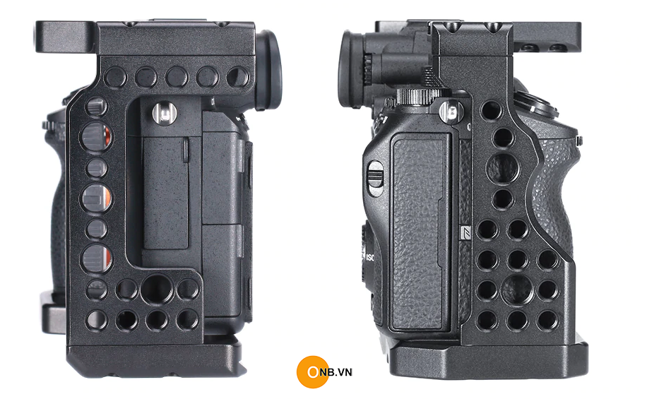 Cage khung bảo vệ Sony a73 a7iii, a7r3 vừa bảo vệ máy chống trày , đồng thời hỗ trợ qauy tối ưu - gắn phụ kiện quay phim, micro, đèn ... gắn lên Gimbal quay dọc.
