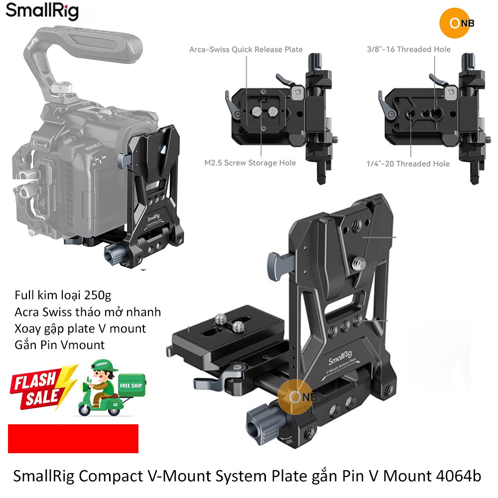 SmallRig Compact V-Mount System Plate gắn Pin V Mount 4064b - Bộ mount thiết kế nhỏ gọn mới nhất dùng cho máy ảnh các loại kết hợp gắn plate pin Vmount chung luôn ! Cực kỳ tiện lợi nhỏ gọn. Setup gọn hơn nhẹ hơn rất nhiều.