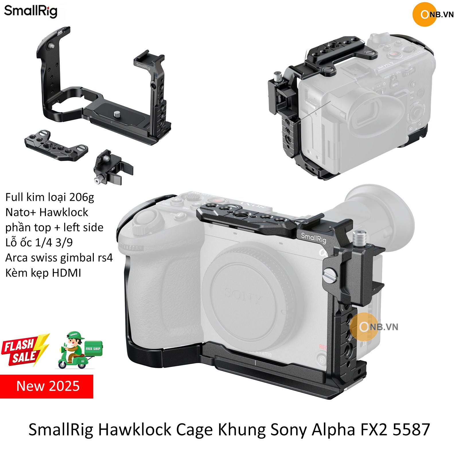 SmallRig Hawklock Cage Khung Sony Alpha FX2 5587 mẫu mới 2025 !! Khung làm đẹp gọn nhẹ, bảo vệ máy + hỗ trợ quy tối ưu + setup gắn phụ kiện