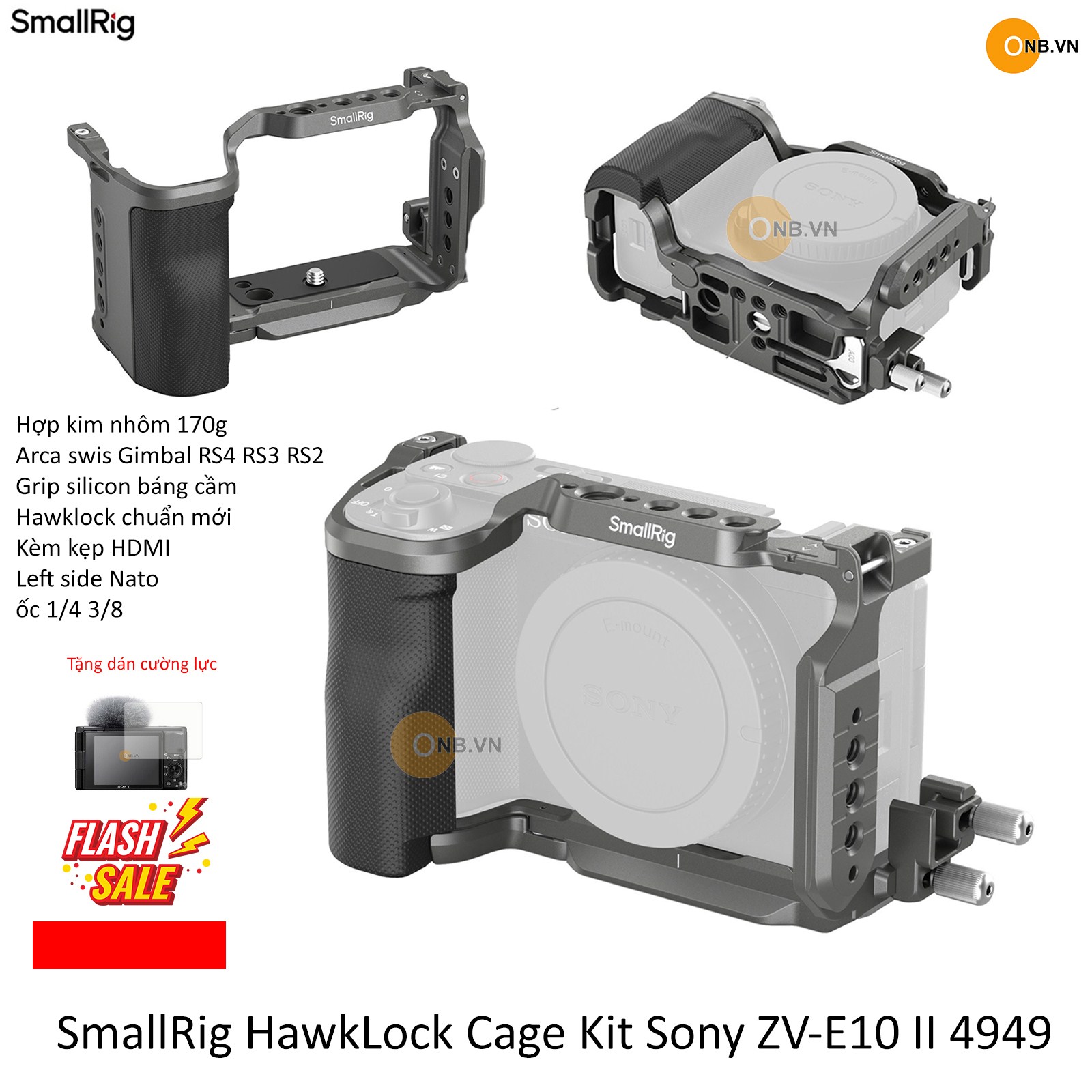 SmallRig HawkLock Quick Release Cage Kit for Sony ZV-E10 II 4949 ! Mẫu cage khung bảo vệ sony alpha zv-e10 II mới nhất thiết kế chuẩn hawklock mới ! Hỗ trợ quay tối ưu setup gắn phụ kiện - đặc biệt có thêm grip silicon phần báng cầm thoải mái chắc tay hơn