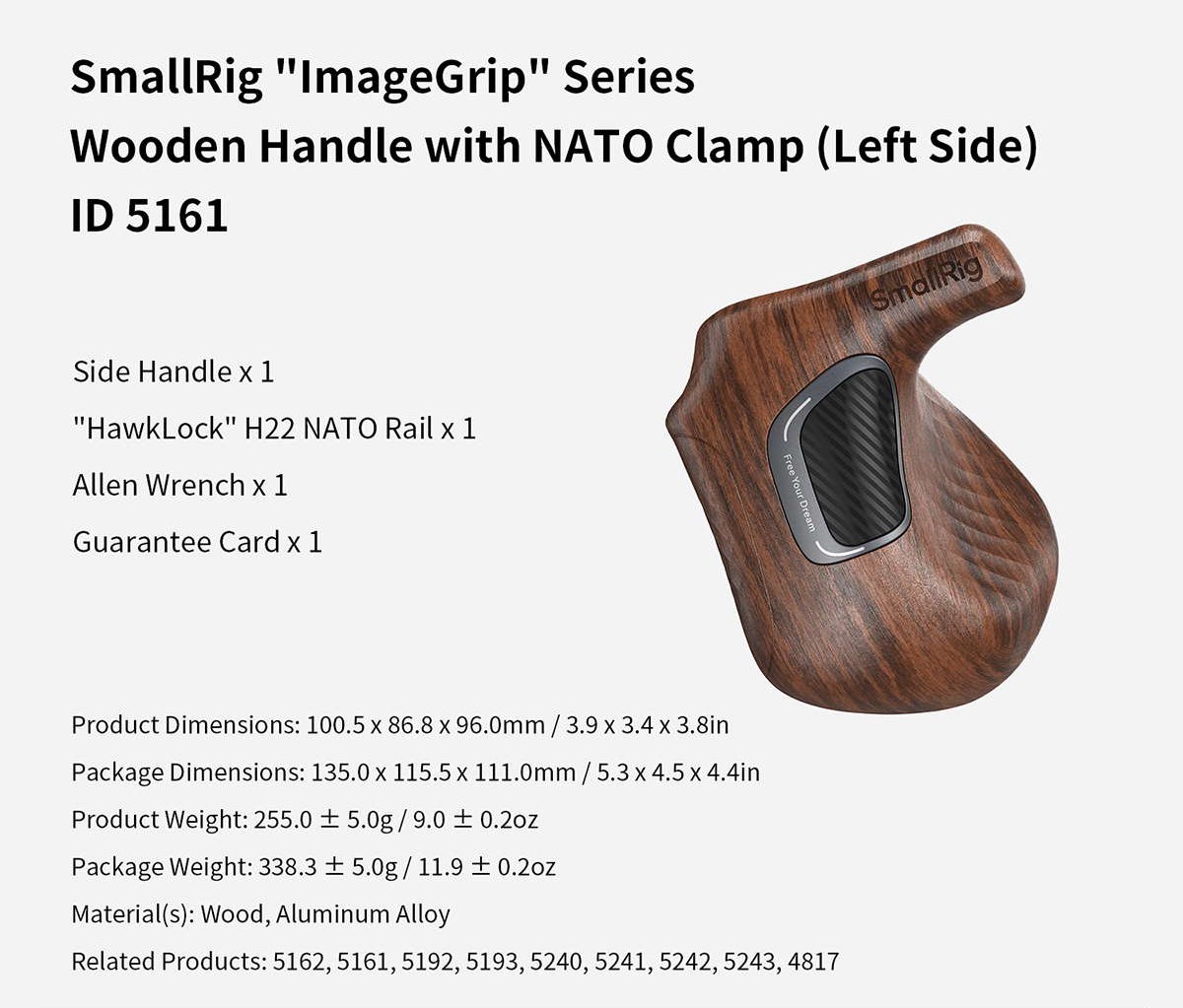SmallRig ImageGrip Side Handle ngàm Hawklock Báng Gỗ Xoay 360 gắn bên trái 5161 ! mới 2026 - Thiết kế công thái học - cho cảm giác cầm thoải mái chắc tay hỗ trợ quay chụp tối ưu
