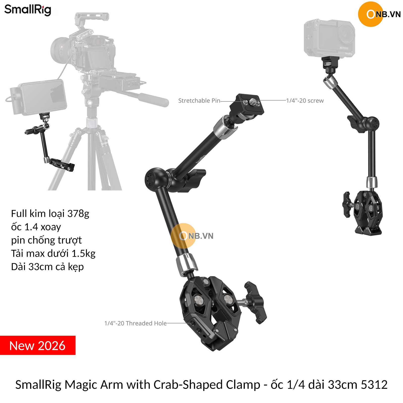 SmallRig Magic Arm with Crab-Shaped Clamp - đầu ốc 1-4 dài 33cm code 5312 ! Mẫu kẹp càng kua + tay magic am mới nhất - làm đẹp chắc chắn