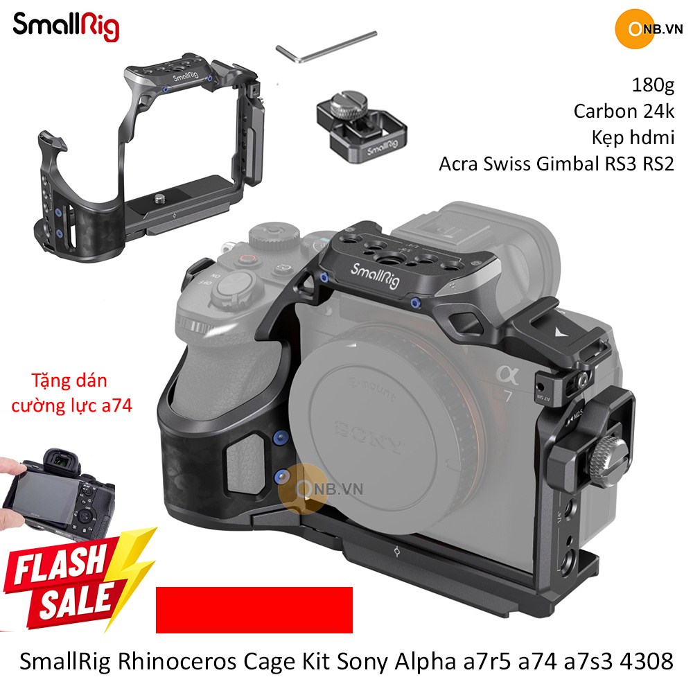 SmallRig Rhinoceros Cage Kit Sony Alpha a7r5 a74 a7s3 a7r4 4308 ! Mẫu cage mới nhất từ Smallrig ý tưởng dựa trên tê giác chất liệu làm từ 24k carbon.