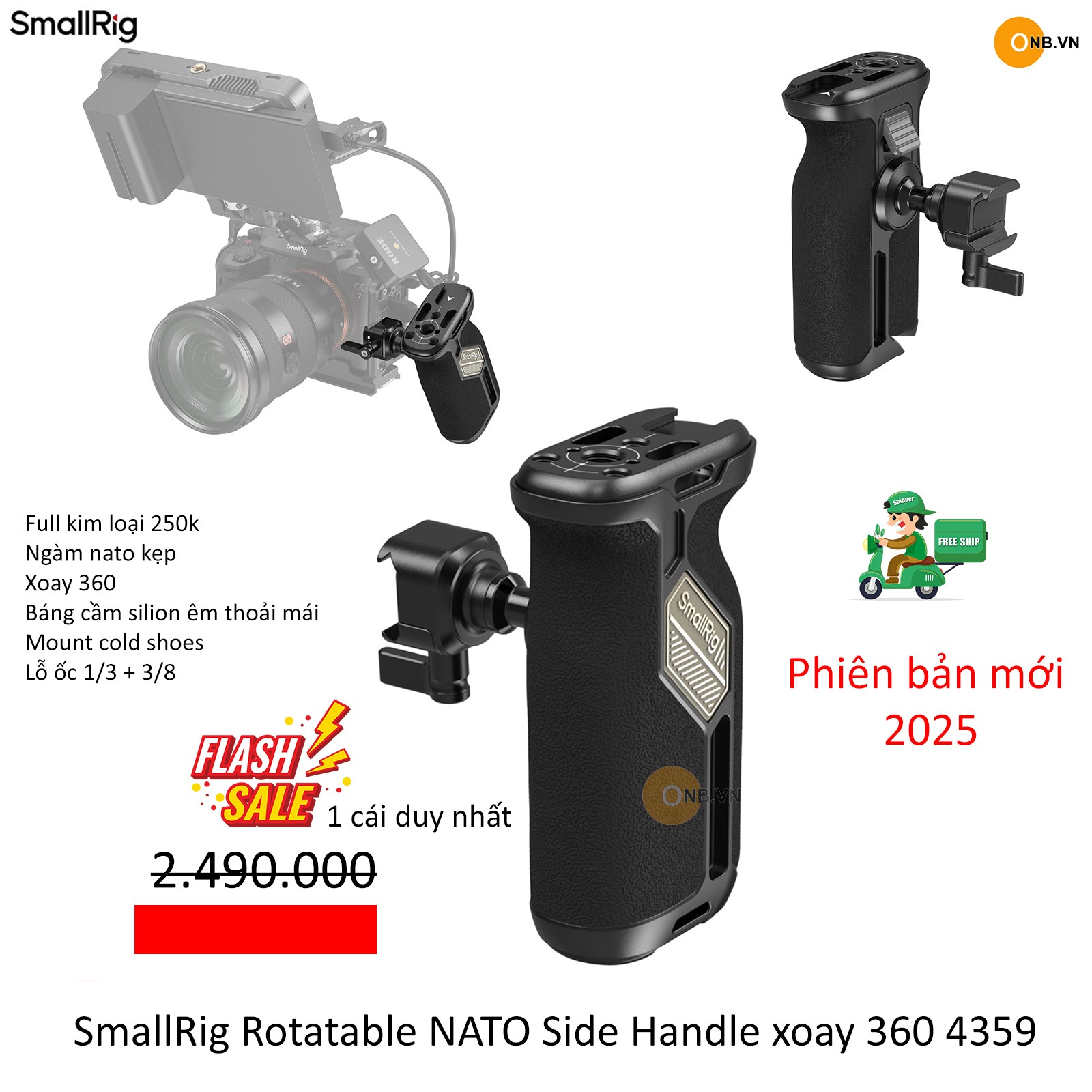 SmallRig Rotatable NATO Side Handle xoay 360 code 4359 ! Mẫu side handle mới nhất 2025 ngàm Nato gắn cage máy ảnh hỗ trợ quay chụp tối ưu