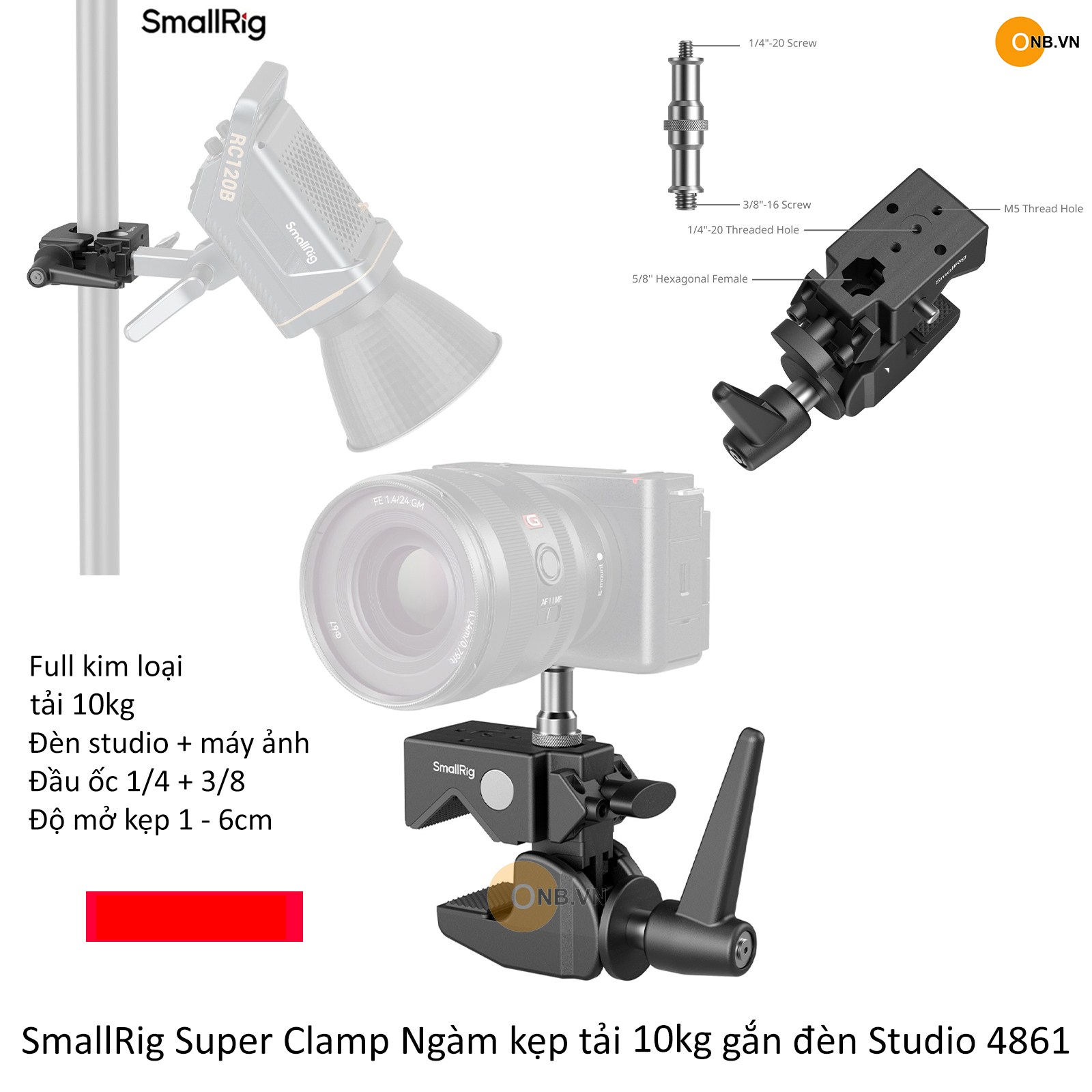 SmallRig Super Clamp Support Kit 4861 - Ngàm kẹp tải 10kg gắn đèn Studio - máy ảnh - phụ kiện ... qua đầu ốc 1/4 hoặc 3/8 - thiết kế kẹp chắc chắn vào vị trí có thể kẹp