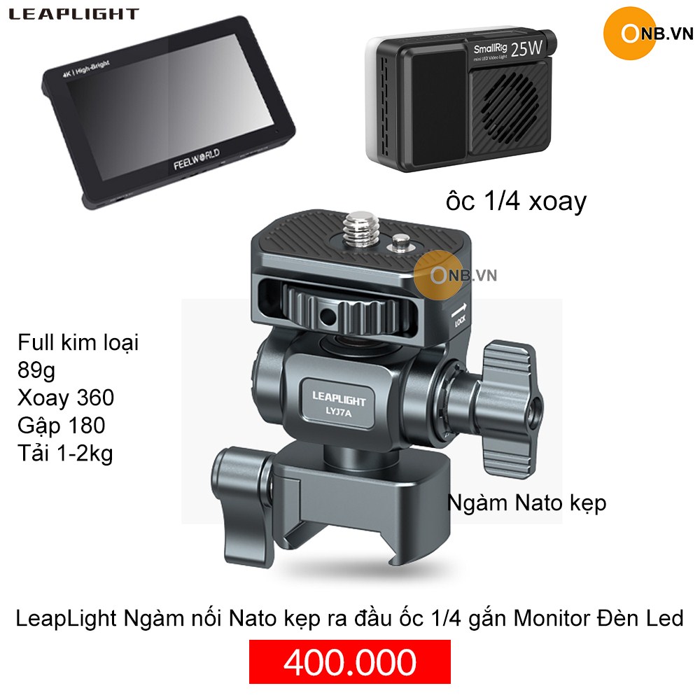 LeapLight Ngàm nối Nato kẹp ra đầu ốc 1/4 gắn Monitor Đèn Led 2025 ! Thiết kế tối ưu cho bạn đang dùng cage khung hoặc vị trí có sẵn ngàm rail để kẹp vào
